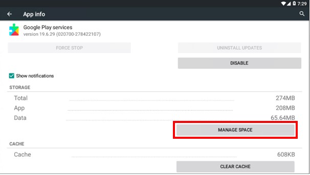 3. Click MANAGE SPACE.