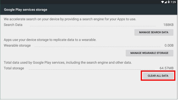 4. Click CLEAR ALL DATA.